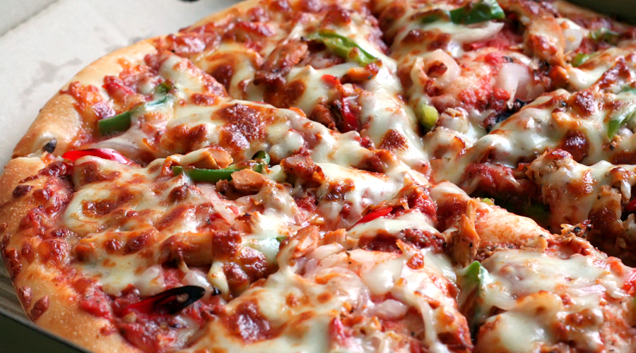Pomodoro, fior di latte campana, scamorza, bacon.