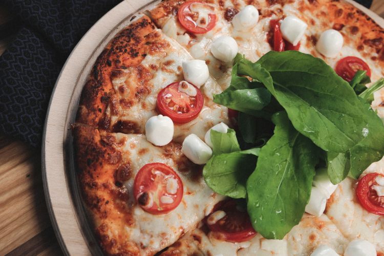 Pomodoro, mozzarella, gorgo, spianata, cipolla, basilico