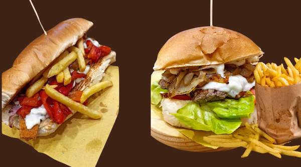 Hamburger, bacon, mozzarella, wurstel, mortadella, peperoni, patatine, ketchup, maionese