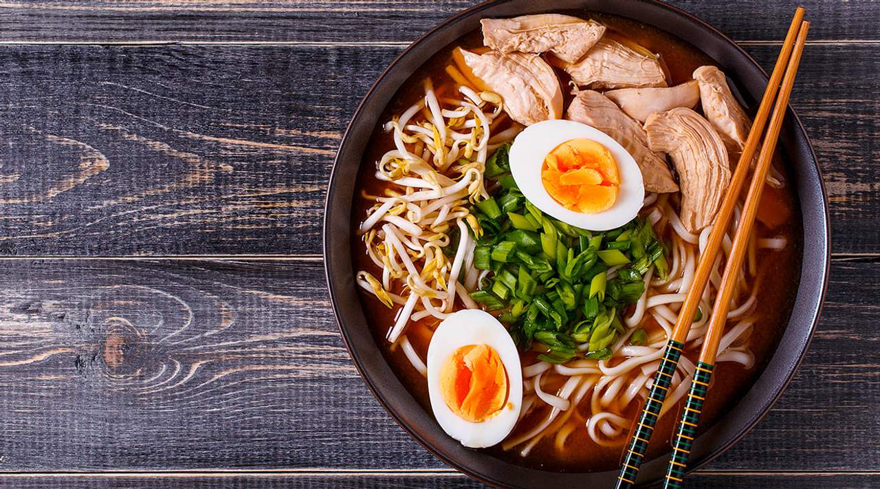 Tagliatelle di frumento di grano duro in brodo con filetti di pollo e verdure
