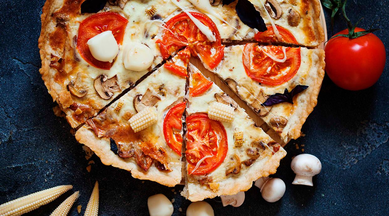 Pomodoro, mozzarella, cotto, funghi, carciofi e olive