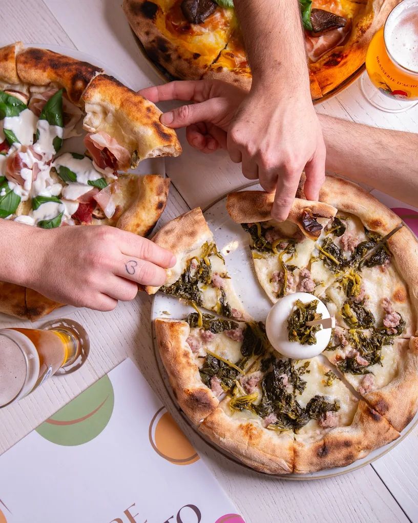 Mozzarella fiordilatte, salsa di pomodoro, prosciutto cotto Praga, cuore di carciofo, funghi freschi champignon, olive verdi denocciolate e olio EVO