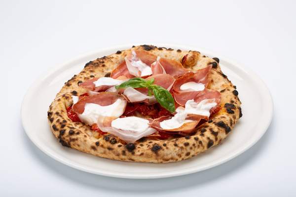 Salsa pomodoro San Marzano BIO leggermente piccante, mozzarella di bufala DOP, 'Nduja, basilico sale pepe e olio EVO
