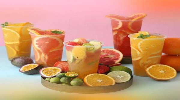 Tè verde al limone con gelatine di cocco, tapioca e frutto della passione