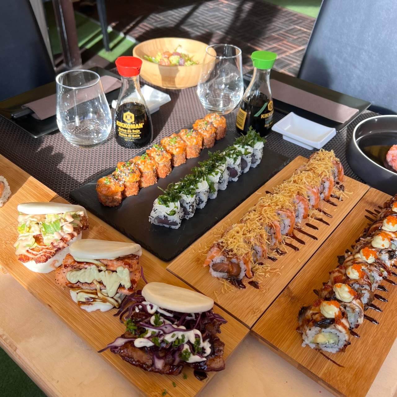 4 ura ebi, 4 ura fritto, 4 hosomaki fritto, 4 tamanegi roll, 4 yasai roll, 4 red dragon roll, 4 green dragon roll, 4 kani tempura roll, 4 king ebi roll, 4 Z-roll