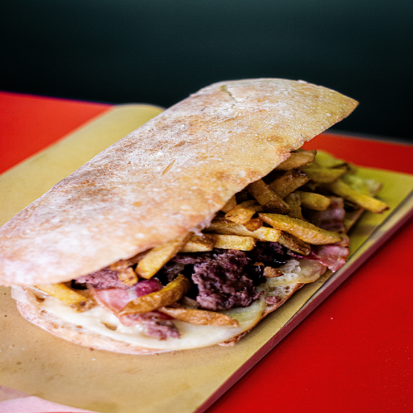 Provola, porchetta, bacon, crema di tarallo e maionese