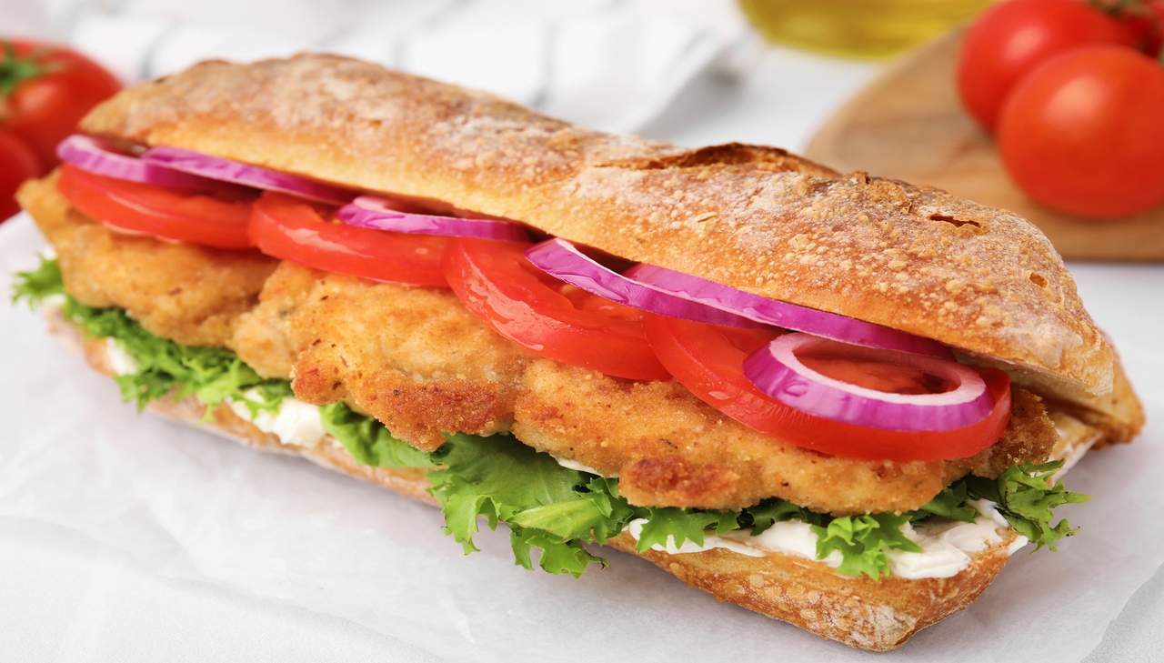 Pollo panato, pomodoro, insalata, aromi