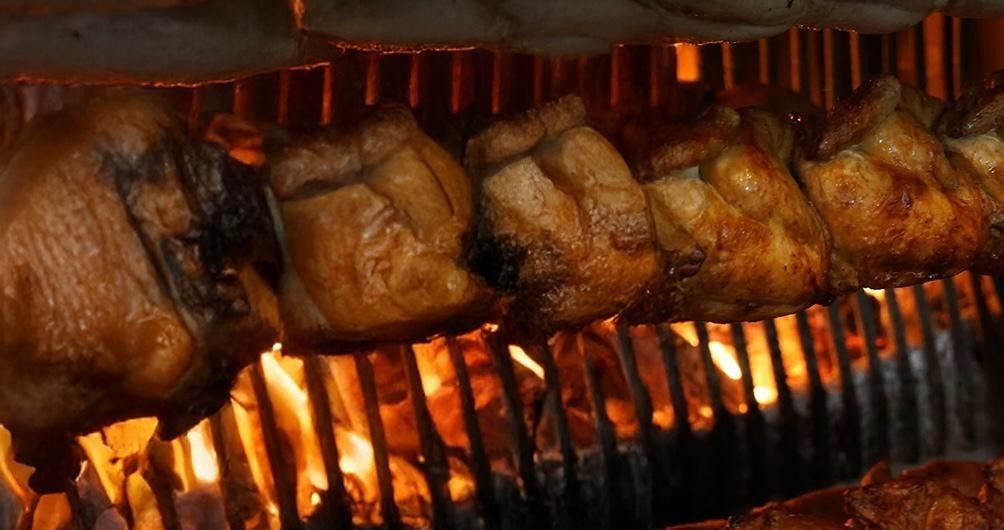 pane pizza, insalata, kebab di pollo, cipolla, salsa yogurt, salsa barbecue