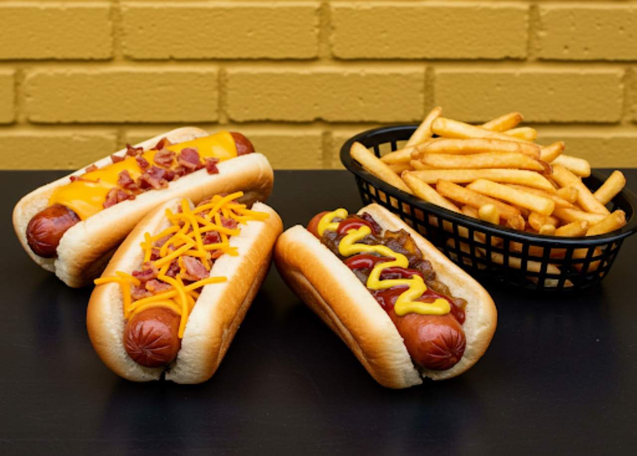 Würstel, cipolla caramellata, cheddar fuso, bacon