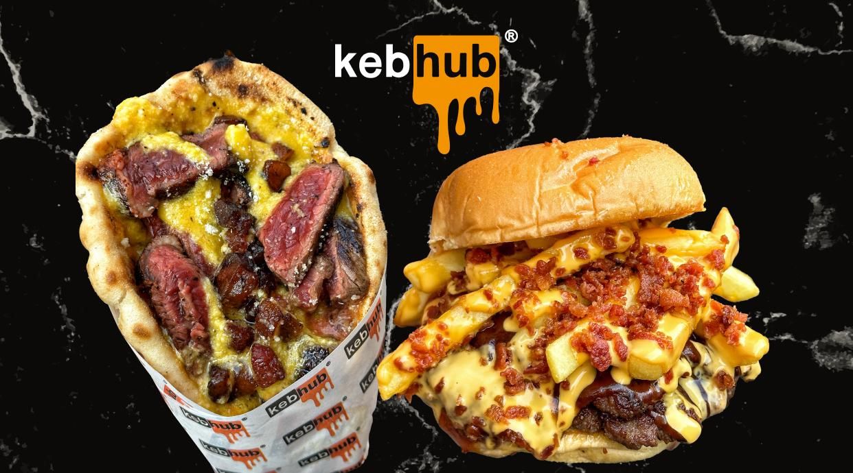 Kebhub artigianale di pollo giallo italiano, salsa cheddar, patatine, granella di bacon, salsa cheddar, salsa bbq, salsa burgerCon patatine e bibita a scelta