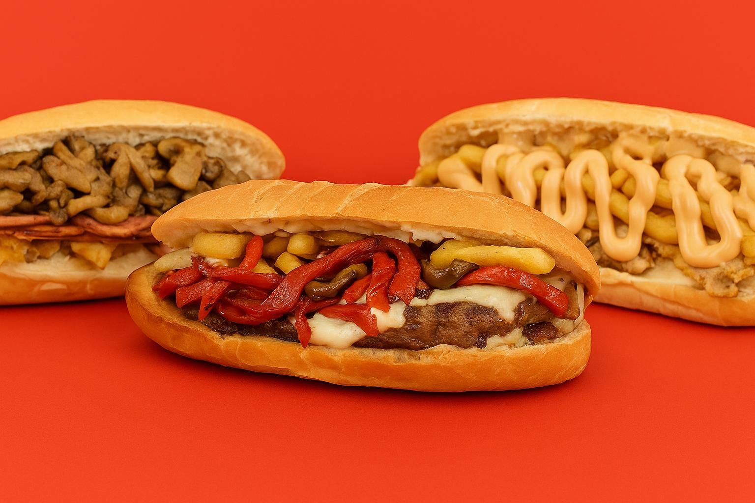 Wurstel di pollo, peperoni, funghi, patatine, salse ketchup e piccante