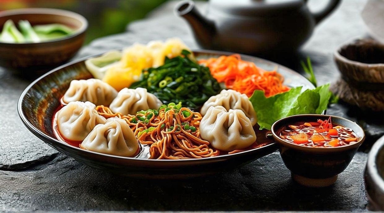 Говядина, рисовая лапша, брокколи, перец болгарский, лук, морковь, пекинская капуста, соус кимчи