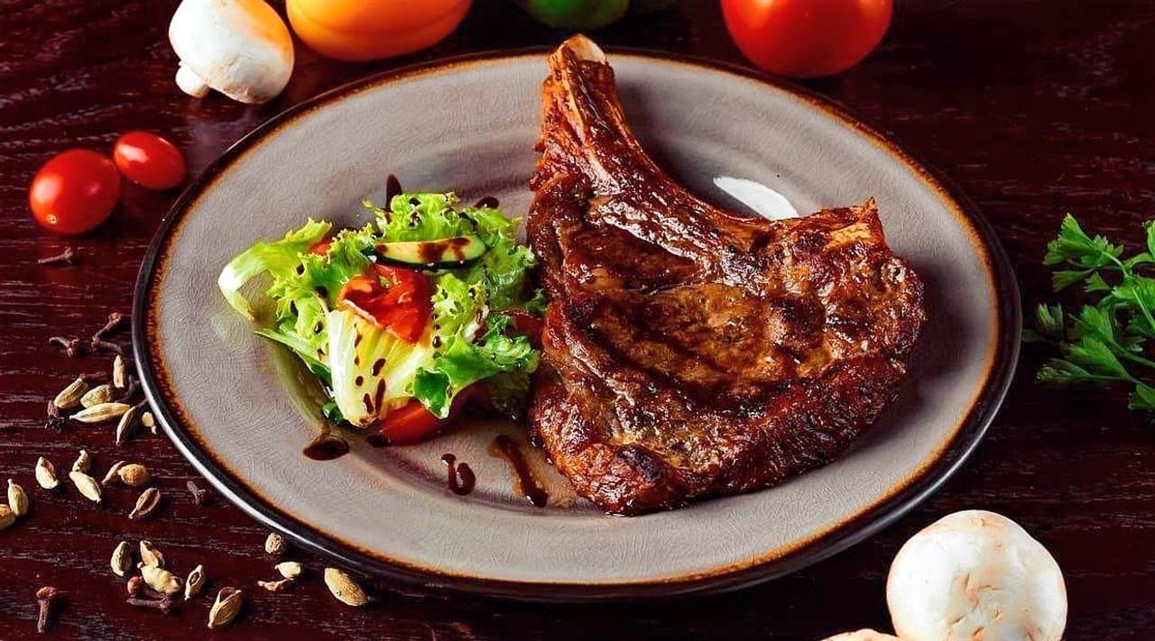 гриль ассорти из стейков рибай 500гр, тибон 500гр, нью-йорк 300гр, куриного филе, антрекота из баранины, колбасок, овощей и картофельных долек