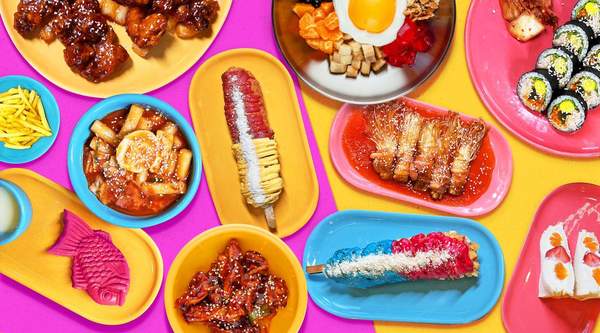 Сочный набор, сочетающий в себе курицу в соусе пультак, зеленый салат, кимпаб с курицей, корейские салаты и булочку бао на закуску. Подается с острым соусом
