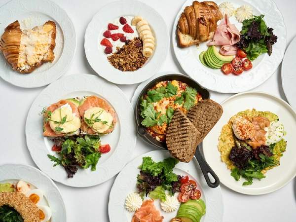 Глазунья, скрембл или омлет, авокадо, творожный сыр, микс зелени, свежие томаты, чиабатта c лососем