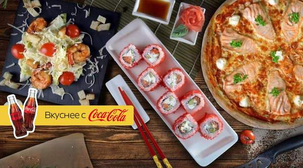 Калифорния, грация, сенсей маки, пицца пепперони. (24 шт. + 30см пицца)