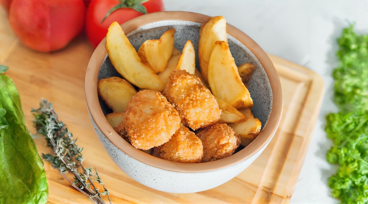 Обжаренные ломтики картофеля в панировке