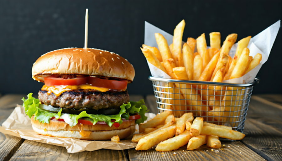 Классический бургер с сочной говяжьей котлетой и овощами
