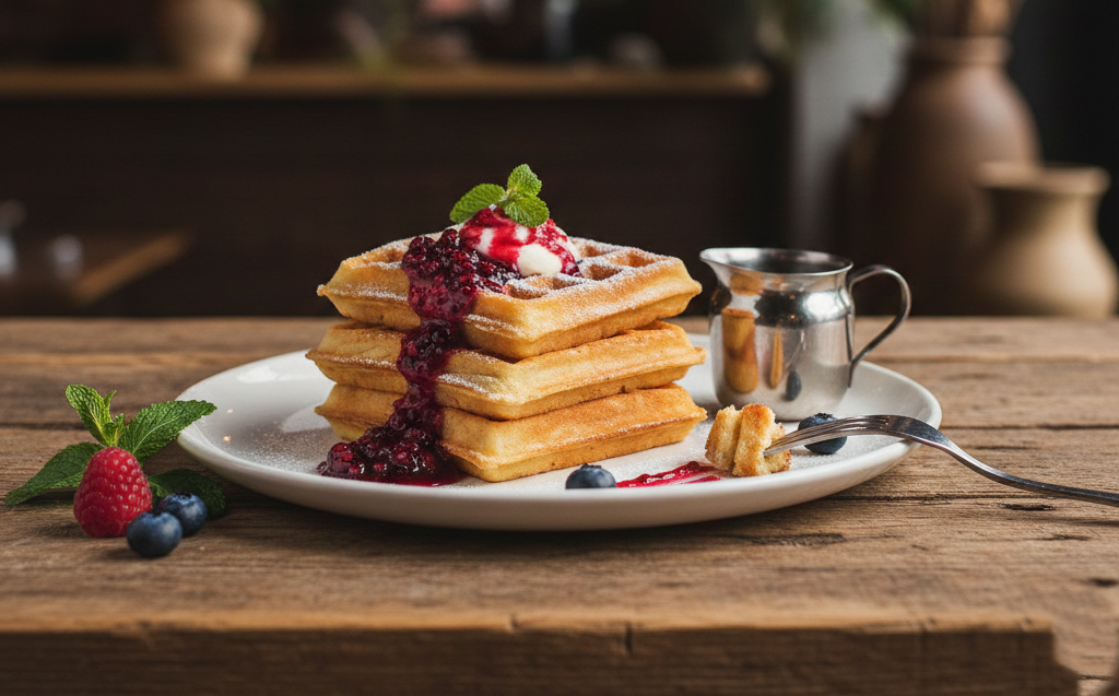 Gaufre Fruit Et Sauce Chocolat