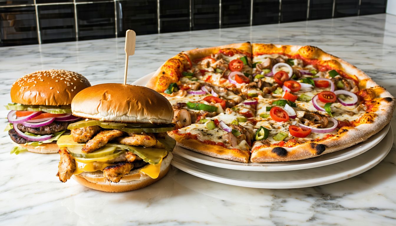 2 steak viande hachée, 2 fromage cheddar, salade, tomate, oignon