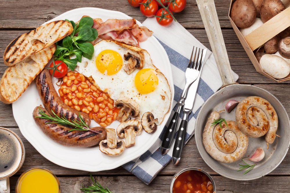 Ouă, fasole roșie, cârnăciori, bacon, ulei, pâine, mix de salate, microplante, roșii cherry, mix semințe; Gramaj 450 g