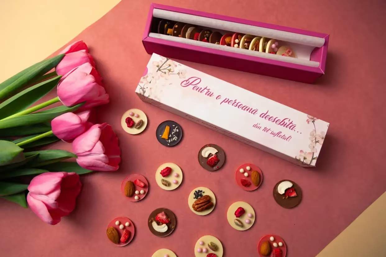 Bomboane mediante mix din ciocolata intr-o cutie patrata