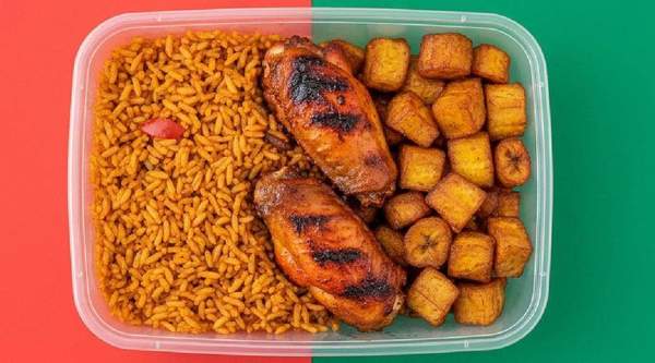 Jollof Rice + Chicken Wings + Plantain (2Pcs)