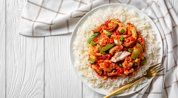 Egg sauce made with peppers, eggs, garnished with spring onions and veggies