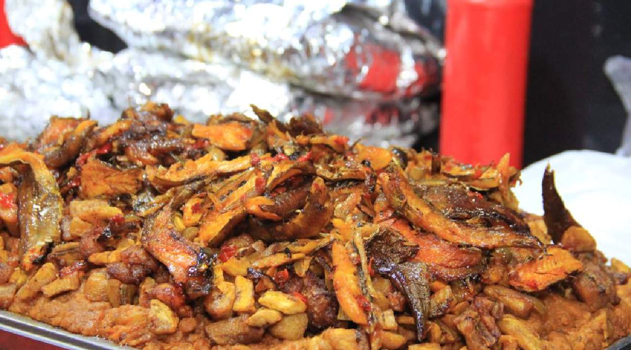 Fried cassava grounded into flour and combined with hot water to make a swallow