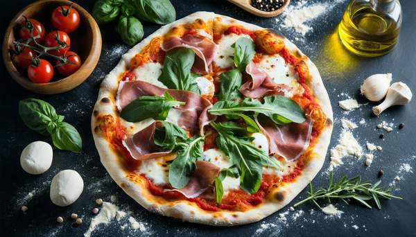 Cienka, chrupiąca i lekka pizza na długo dojrzewającym cieście. Podawana w kawałkach - jak w sercu Rzymu. Klasyczne składniki i włoski smak: sos pomidorowy, ser, szynka cotto, rukola