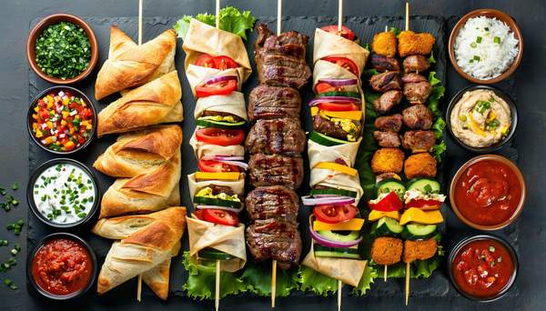 Mięso, surówka, ogórek, pomidor, cebula i sos (zdjęcie poglądowe)