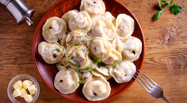 Pierogi z łososiem w sosie śmietanowym z pomidorem - 6 sztuk