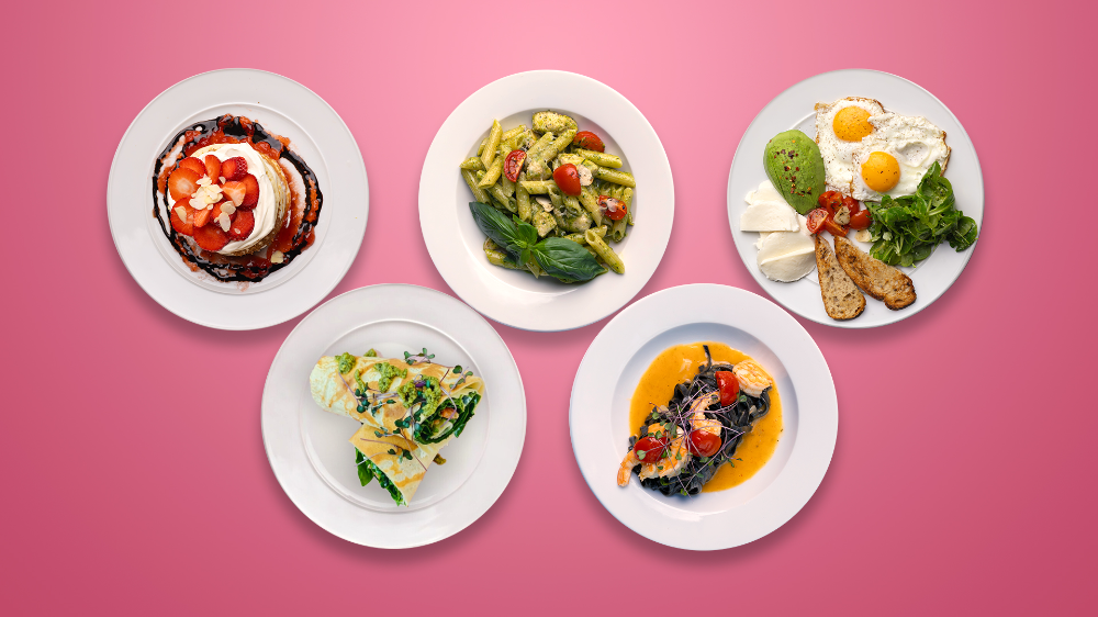 Pistacja & Malina PancakesPuszyste pankejki z kremem pistacjowym i sosem malinowym, posypane chrupiącymi pistacjami.(Fluffy pancakes with pistachio cream and raspberry sauce, topped with crunchy pistachios.)