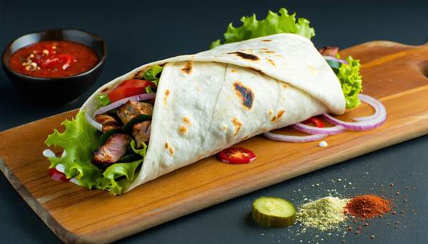 Mięso, ser feta, ser, sałata lodowa, pomidor, ogórek, cebula, sos *zdjęcie poglądowe