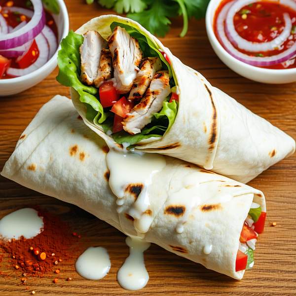 Duża porcja mięsa kebab z warzywami w tortilli*zdjęcie poglądowe