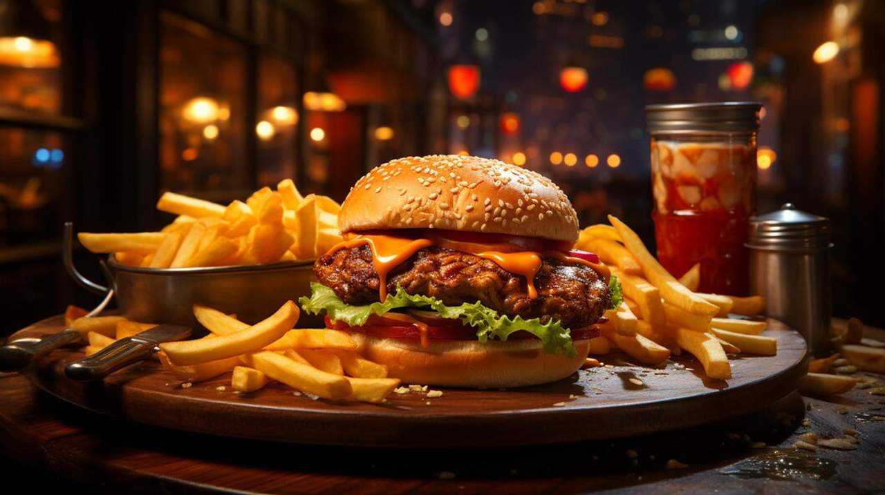 Chrupiące bułka, 100% wołowiny, 3 x ser, bekon, warzywa, sos BBQ oraz autorskie sosy.