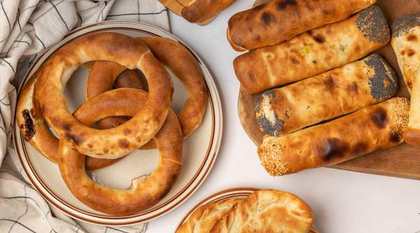 Precel z wegańskim serem cheddar i kimchi - ostre