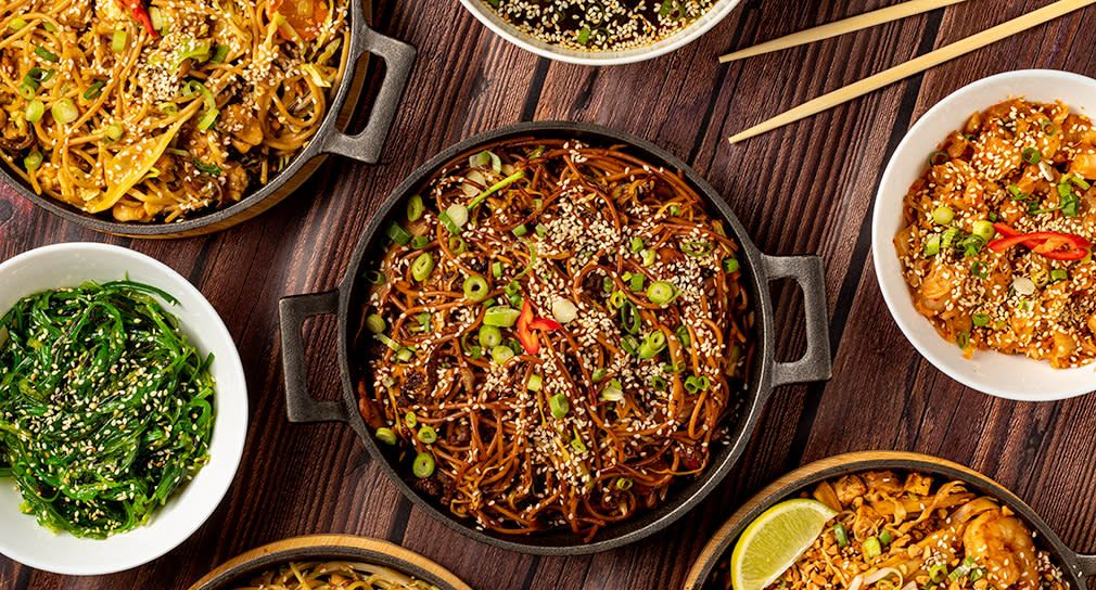Soczyste kawałki kurczaka smażone na woku w gęstym, słodko-słonym sosie teriyaki. Podawane z makaronem jajecznym, chrupiącymi warzywami i odrobiną chili dla przełamania smaku. Całość wykończona prażonym sezamem i świeżym szczypiorkiem.