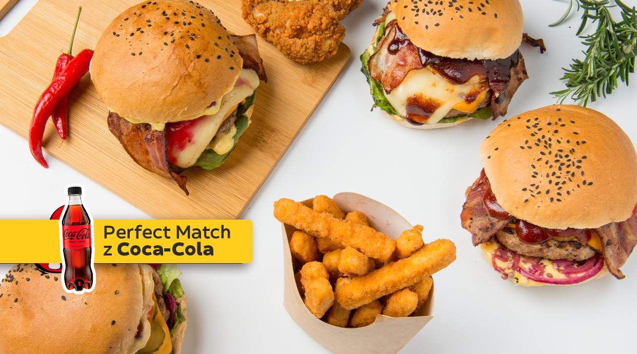 Mięso 170g, sos BBQ Bull's-Eye, ser camembert, mozzarella x2, ser cheddar, boczek x2, sos musztardowo-miodowy, rukola.