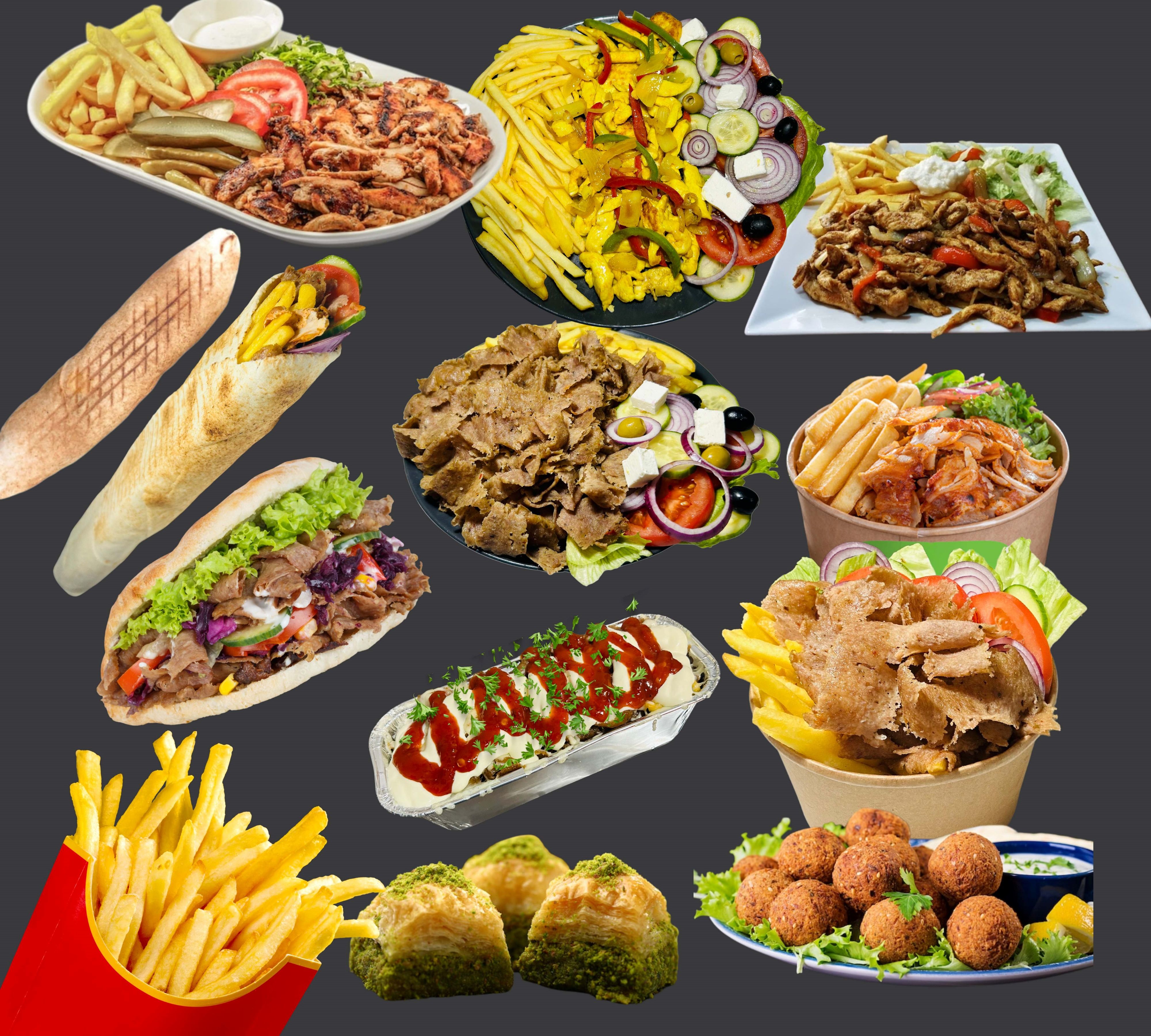 Pita, mięso, frytki, specjalnie surówka , warzywa i sos