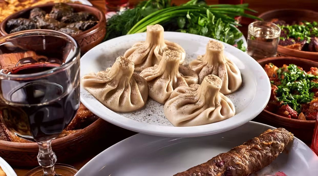 Gruzińskie pikantne pierożki z rosołem i mięsem wołowo-wieprzowym