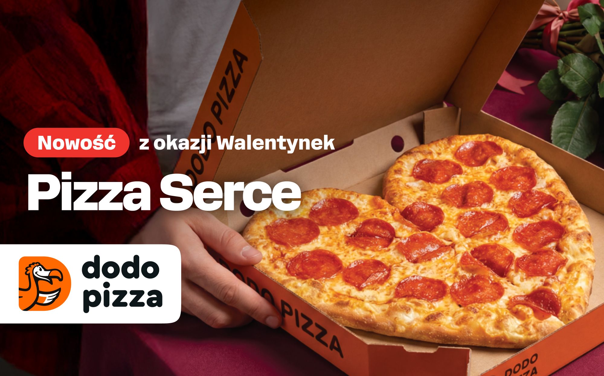 Miłość w nietradycyjnym wydaniu: polana prawdziwym sosem pomidorowym, posypana delikatną mozzarellą i doprawiona pikantnością pepperoni. All you need is DODO Serce
