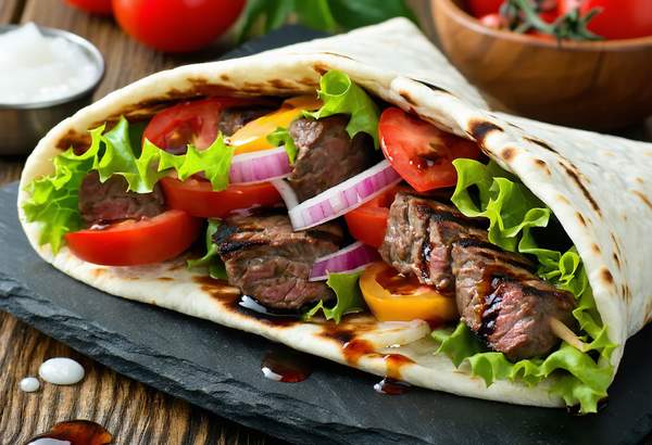 Bułka, mięso, sosy, surówki; zdjęcie poglądowe