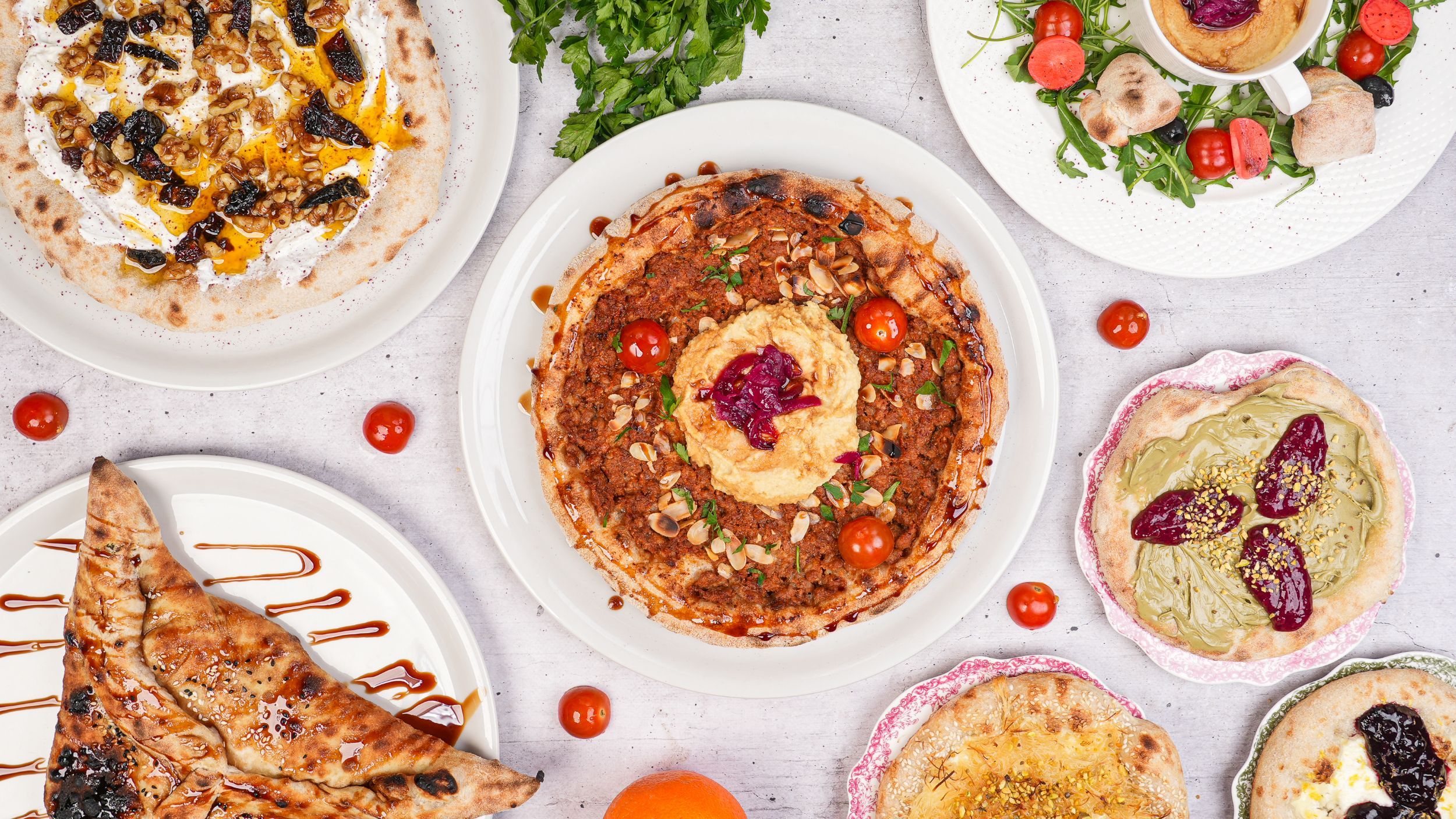 3 sery, zaatar, oliwki, pomidorki koktajlowe, mięta