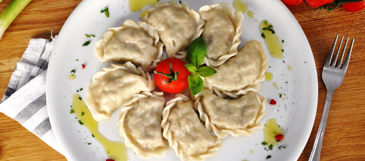 Kozackie pielmieni z mięsem wołowym i wieprzowym oraz podsmażaną cebulką (porcja 13 szt.)