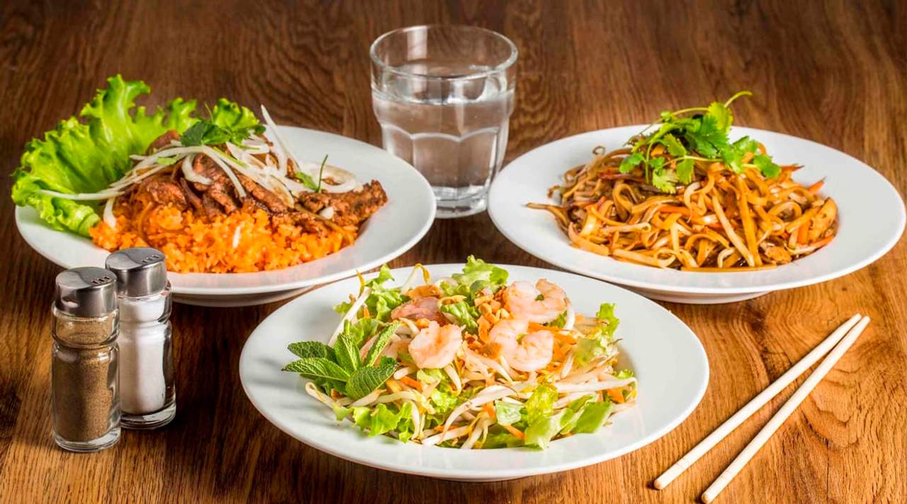 Makaron ryżowy ze słodko-kwaśnym sosem tamaryndowym na bazie azjatyckich grzybów, tofu, kiełkami fasoli mung, szczypiorkiem, kapustą pak choi, orzeszkami, marchewką i limonką. Danie łagodne.