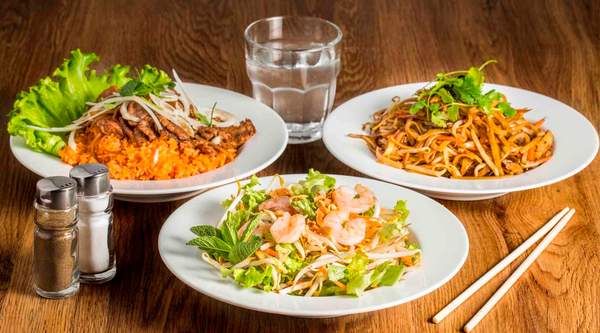 Makaron ryżowy ze słodko-kwaśnym sosem tamaryndowym, kiełkami fasoli mung, szczypiorkiem, jajkiem, tofu, kurczakiem, orzeszkami, marchewką i limonką. Danie łagodne.