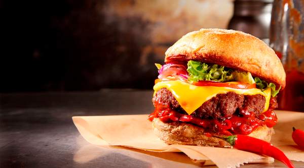 Wołowina 100% - w stylu bałkańskim pljeskvica, ser, warzywa - ogórek marynowany, cebula czerwona piklowana, kapusta, i sosy: czosnkowy na bazie jogurtu i drugi na bazie pasty ajwar.