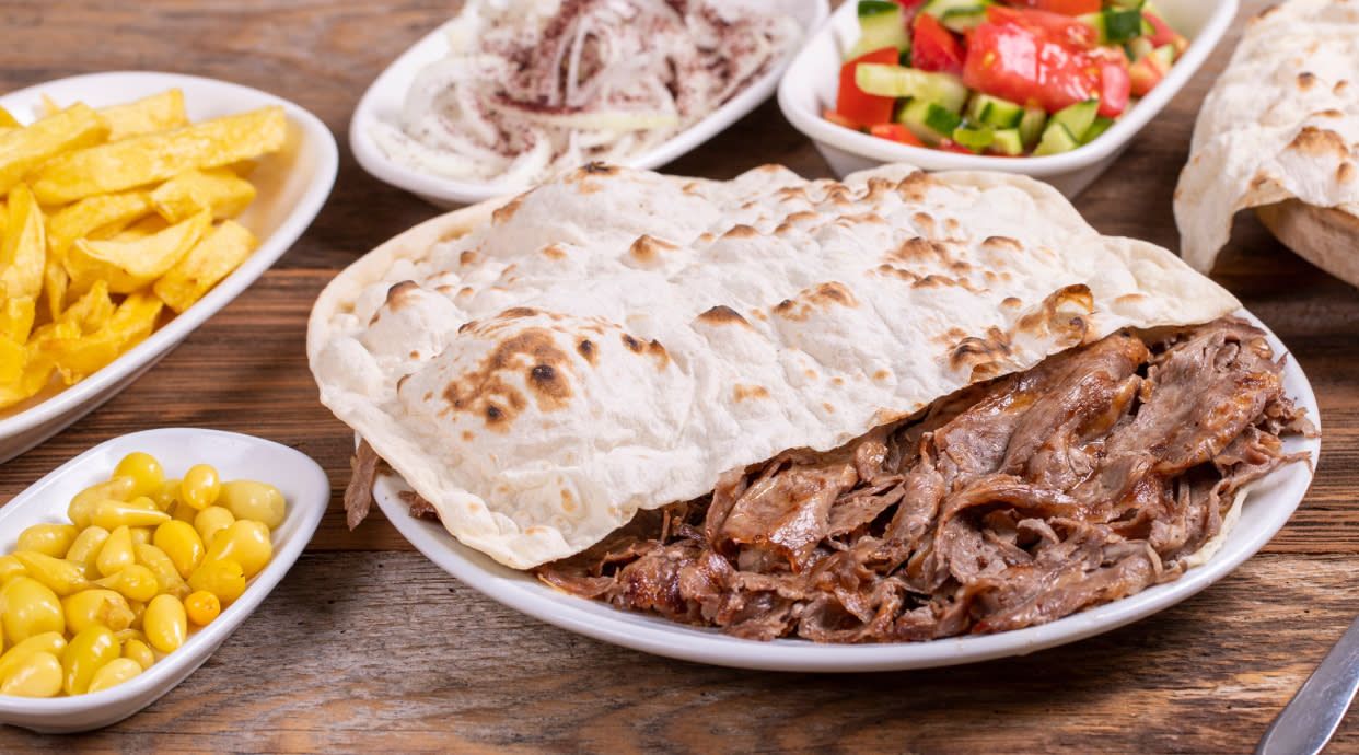 Pão pita ,salada,carne de kebab (frango,vaca ou mix)e molho