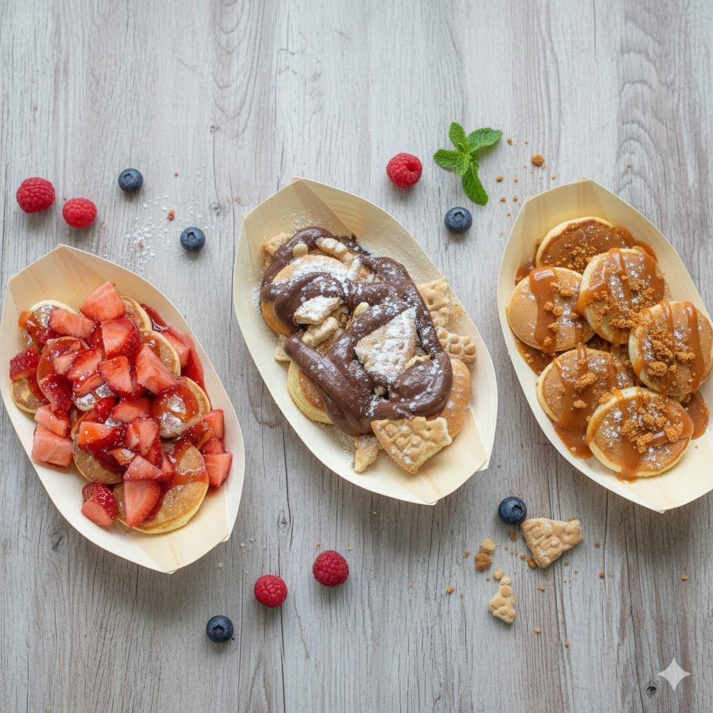 Faça o Seu Menu: escolha a quantidade de mini panquecas e adicione 2 ingredientes à sua escolha. Toppings de morango, caramelo, chocolate ou Nutella, Oreo, Biscoff, Bolacha Maria ou fruta do dia.